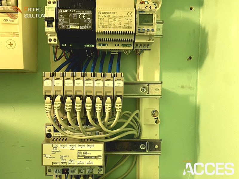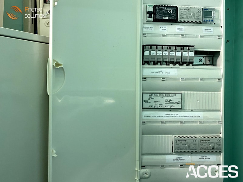 • Un interphone vidéo Aiphone de la gamme JP, garantissant une identification visuelle claire et rapide des visiteurs.